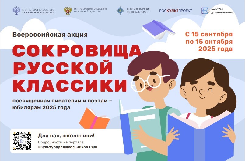 15 сентября 2025 года в рамках межведомственного культурно-образовательного проекта «Культура для школьников» стартует всероссийская литературная акция «Сокровища русской классики», посвященная писателям и поэтам – юбилярам 2025 года.